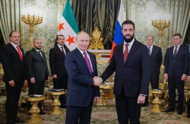 بحث الرئيس السوري أحمد الشرع مع نظيره الروسي فلاديمير بوتين، في العاصمة الروسية موسكو، العلاقات الثنائية وآخر التطورات في المنطقة.