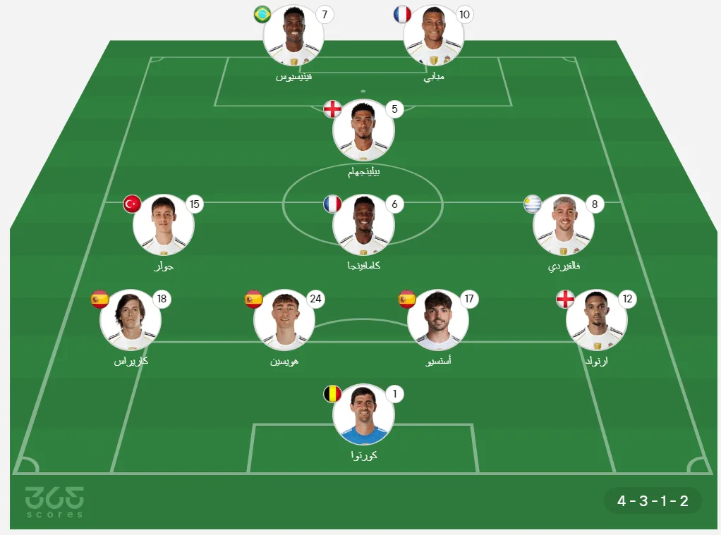 خط الوسط: أردا جولر، إدواردو كامافينجا، فيديريكو فالفيردي، جود بيلينجهام.
