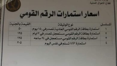 جدول التسعيرة الجديد “اسعار استمارة بطاقة الرقم القومي 2024” .. أعرف التفاصيل كلها